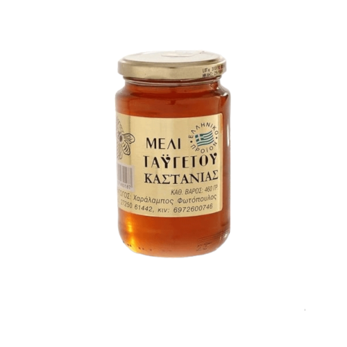 Oryginalny miód kasztanowy spadziowy pozyskiwany w Grecji na Półwyspie Peloponez, który wyróżnia się wyjątkowym, intensywnym "pieprznym" smakiem z lekko gorzkim posmakiem, mniej słodkim niż inne miody. Miód kasztanowy jest bogaty w pierwiastki śladowe, takie jak potas, magnez, mangan, bar oraz fruktozę i garbniki dzięki kasztanowi. W miodzie tym znajduje się duża zawartość ziaren pyłku, które nadają mu bardzo mocny smak.